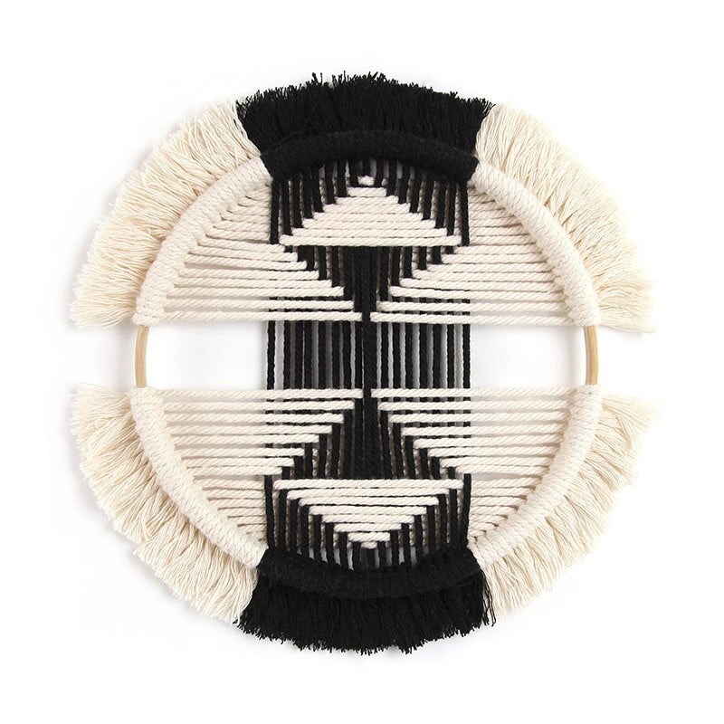 Voici le tout nouveau décor mural, notre macramé mural noir et blanc ! Cette décoration élégante et tendance est parfaite pour apporter un peu de charme intérieur à n’importe quelle pièce. Elle ne se contentera pas d’ajouter un élément de design accrocheur, mais constituera également une belle addition à votre décor existant. Avec son motif géométrique complexe, ce morceau de macramé créera une présentation étonnante pour n’importe quel mur ou porte de votre maison